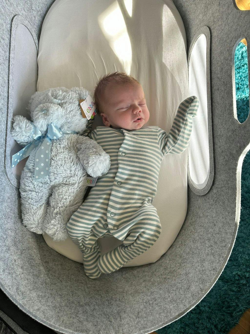 Purchased for our fourth Grandchild this bear is perfect for sitting in his cot and for snuggling into when he is older. I could not fault Aurora's Excellent customer service.